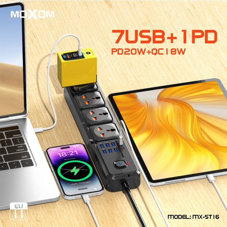 چند راهی برق و شارژر موکسوم مدل MX-ST16 طول کابل 2 متری