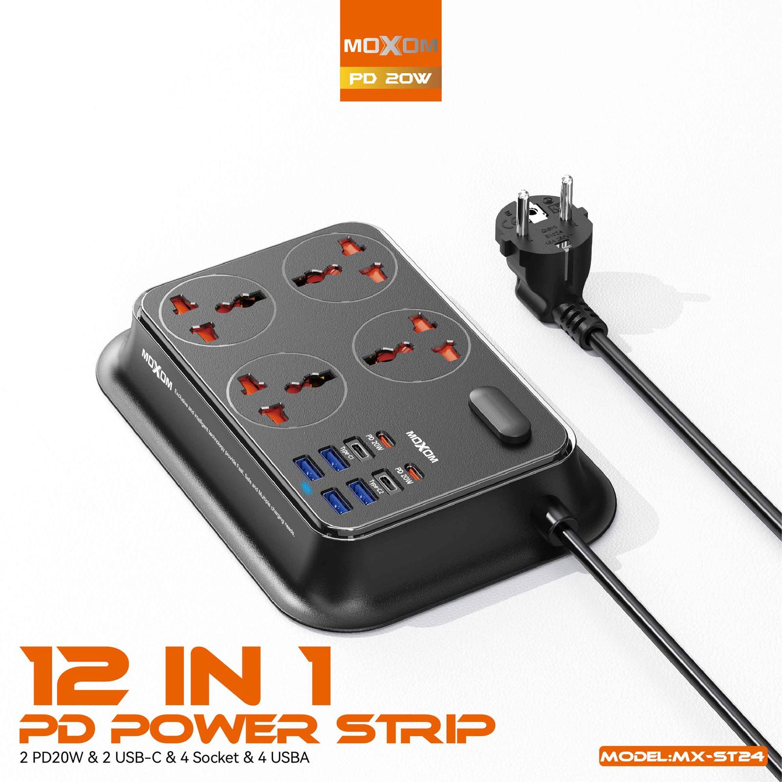 در هر خانه، مغازه و شرکتی چندراهی برق موردنیاز است. محصولی که میتواند بهراحتی مشکل تعدد دستگاههای هوشمند و کمبود پریز و شارژر را حل کند. چندراهی برق موکسوم (moxom) مدل MX-ST24 یکی از بهترین چندراهیهای برق موجود در بازار است که با خرید یک محصول 12 سوکت برق را در خود جای داده که با انواع دو شاخه و سه شاخه ها سازگاری دارد. برند موکسوم دارای محصولات با کیفیت بالا می باشد که چندین تست قابلیت اطمینان را پشت سر گذاشته اند و با افتخار می گوییم که چندراهی های برق این برند قوی تر از سایرین هستند. این چند راهی برق با تعداد پریز های بالا و خروجی USB نیاز شما را در خانه و محل کارتان برطرف می کند و برای هر نوع لوازم خانگی و دستگاه های تلفن همراه مناسب است.