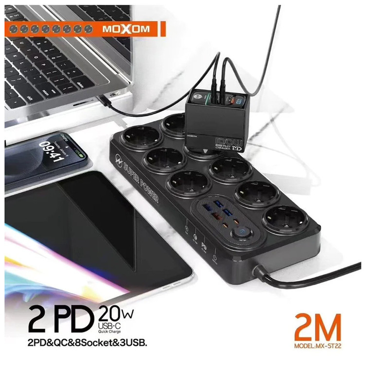 چند راهی برق سیار موکسوم مدل MOXOM ST22 یک ابزار پیشرفته و چندکاره برای مدیریت مصرف انرژی و شارژ دستگاههای الکترونیکی شماست. این محصول با طراحی زیبا و مهندسیشده، امکانات مدرن، و ویژگیهای ایمنی بالا، برای استفاده در محیطهای خانگی، اداری، و حتی در سفر، انتخابی ایدهآل محسوب میشود. در ادامه، توضیحی جامع و طولانی درباره این چندراهی ارائه میشود که تمام جنبههای آن را پوشش میدهد.